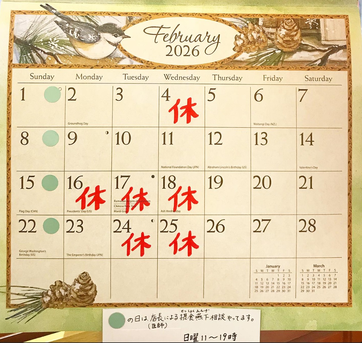 - 2月の営業カレンダーです。